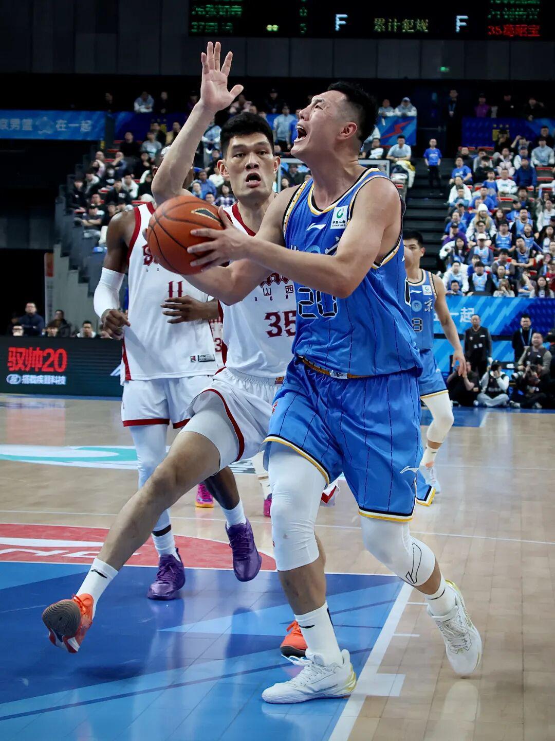 第四节决胜时刻,翟晓川等老将挺身而出:晓川先是上篮得分、三分命中,随后又凭借精准判断原地起飞大帽对手上篮,用防守扼杀对手进攻势头。最后时刻,他更是径直杀入禁区,上篮得手同时造成犯规,稳稳拿下2+1,将分差缩小至2分。老将们的顽强拼搏,让这场失利更显悲壮,也展现了球队不屈的斗志。