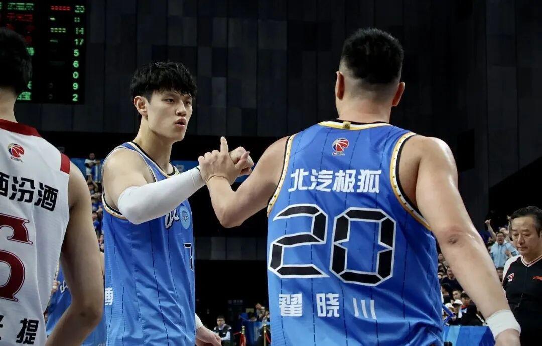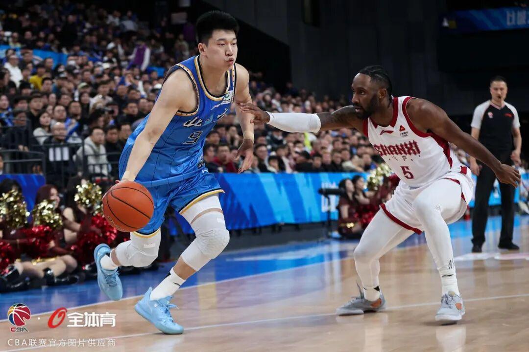 今日的生日佬——周琦展现统治力,篮下打板命中奠定基调,更以长臂优势扇飞对手上篮,用盖帽筑起禁飞区,同时在篮板球争夺中占据绝对上风;范子铭不仅能外线发炮,更能篮下补篮得分,与周琦的内传内低手配合默契十足,与晓川一起联手筑牢内线屏障,将篮板优势转化为场上竞争力。